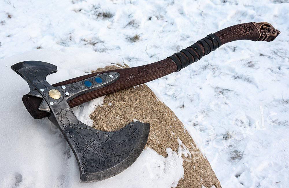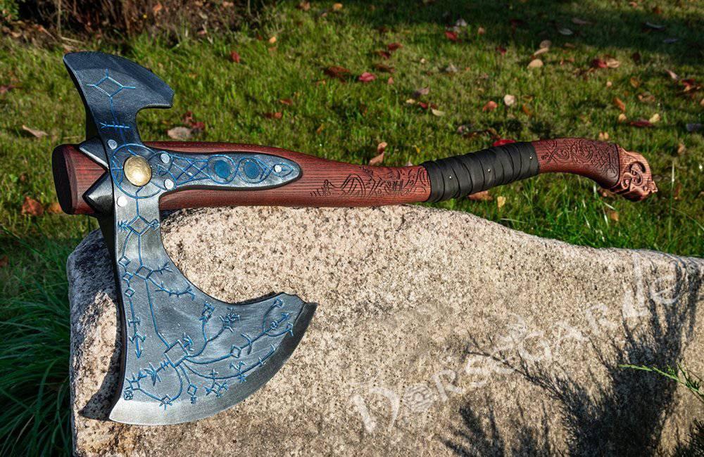 Handforged Leviathan Decorated Replica Axe - Blue & Gold