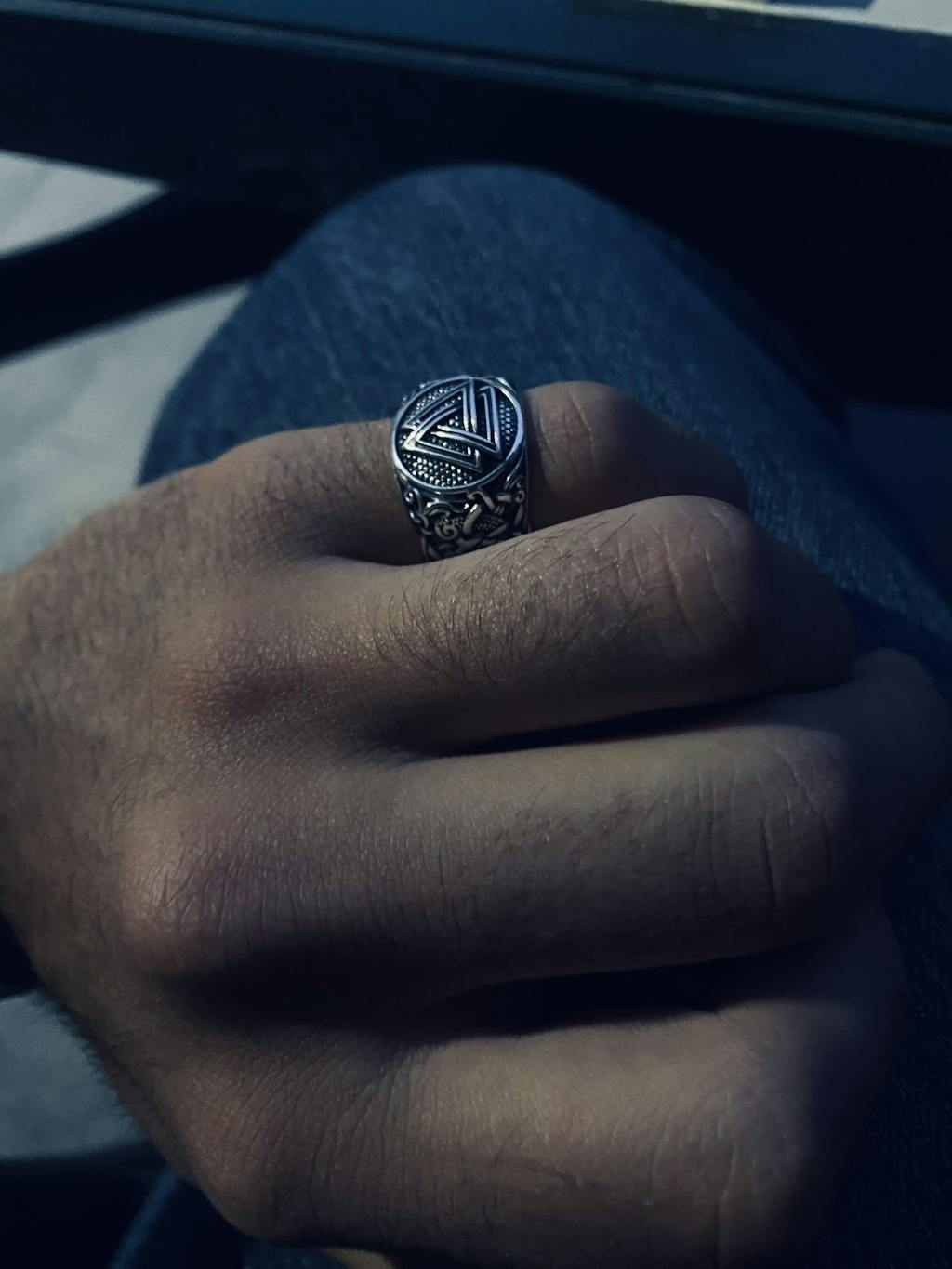 Handcrafted Valknut Rune Mammen Style Ring - Sterling Silver