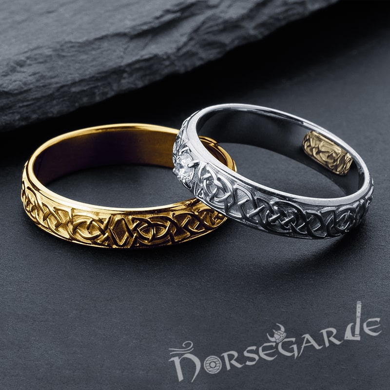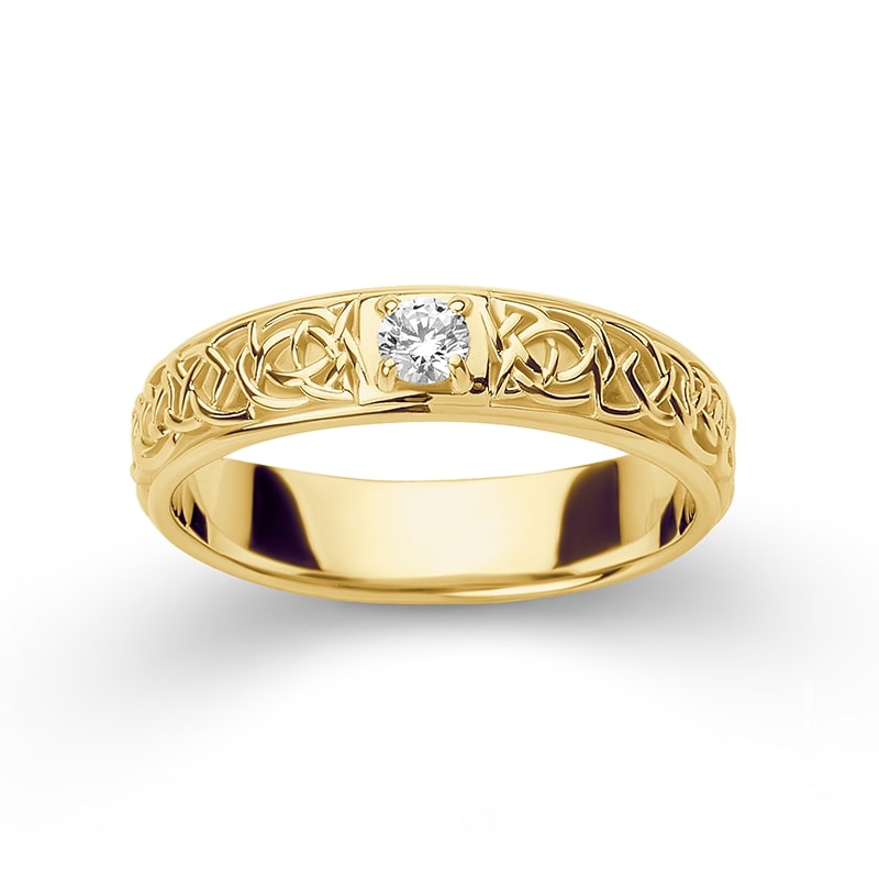 This gold band features a handcrafted Celtic knot design and comes in two options: with or without a dazzling diamond gem. A valuable addition to any jewelry collection, it is a timeless piece that can elevate your style. For more information on how to accurately measure your finger size, please refer to our Ring Sizing Guide.