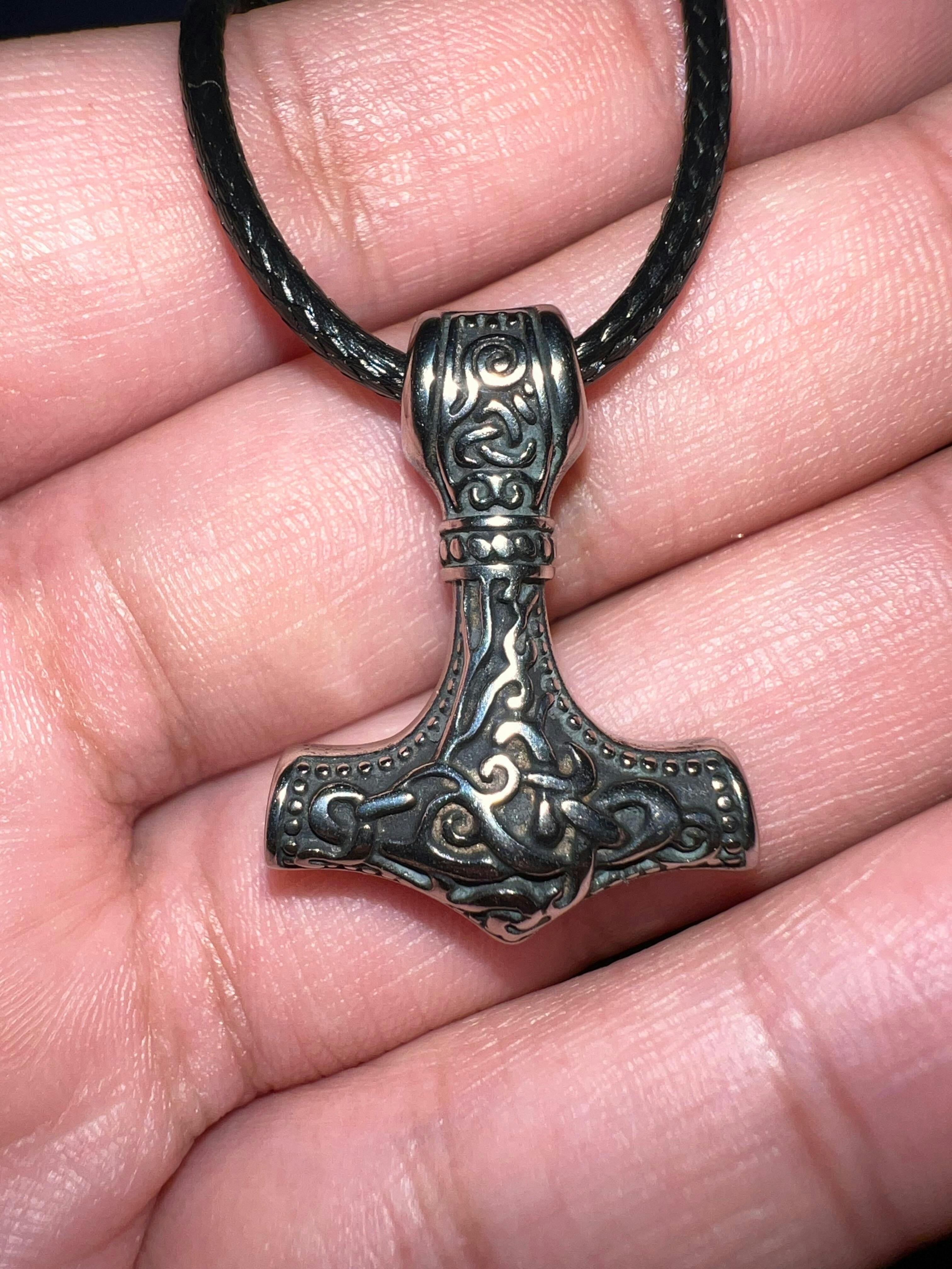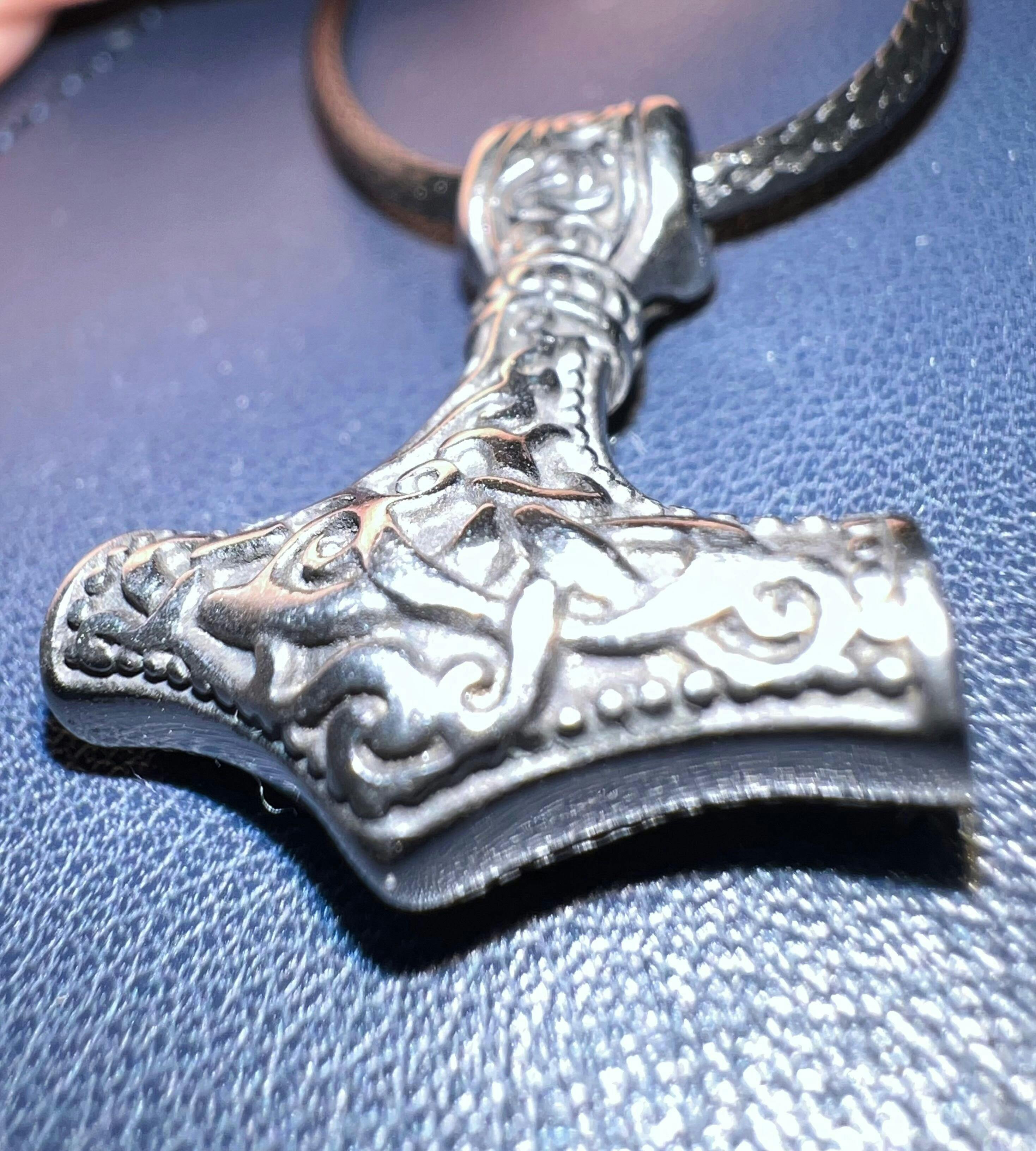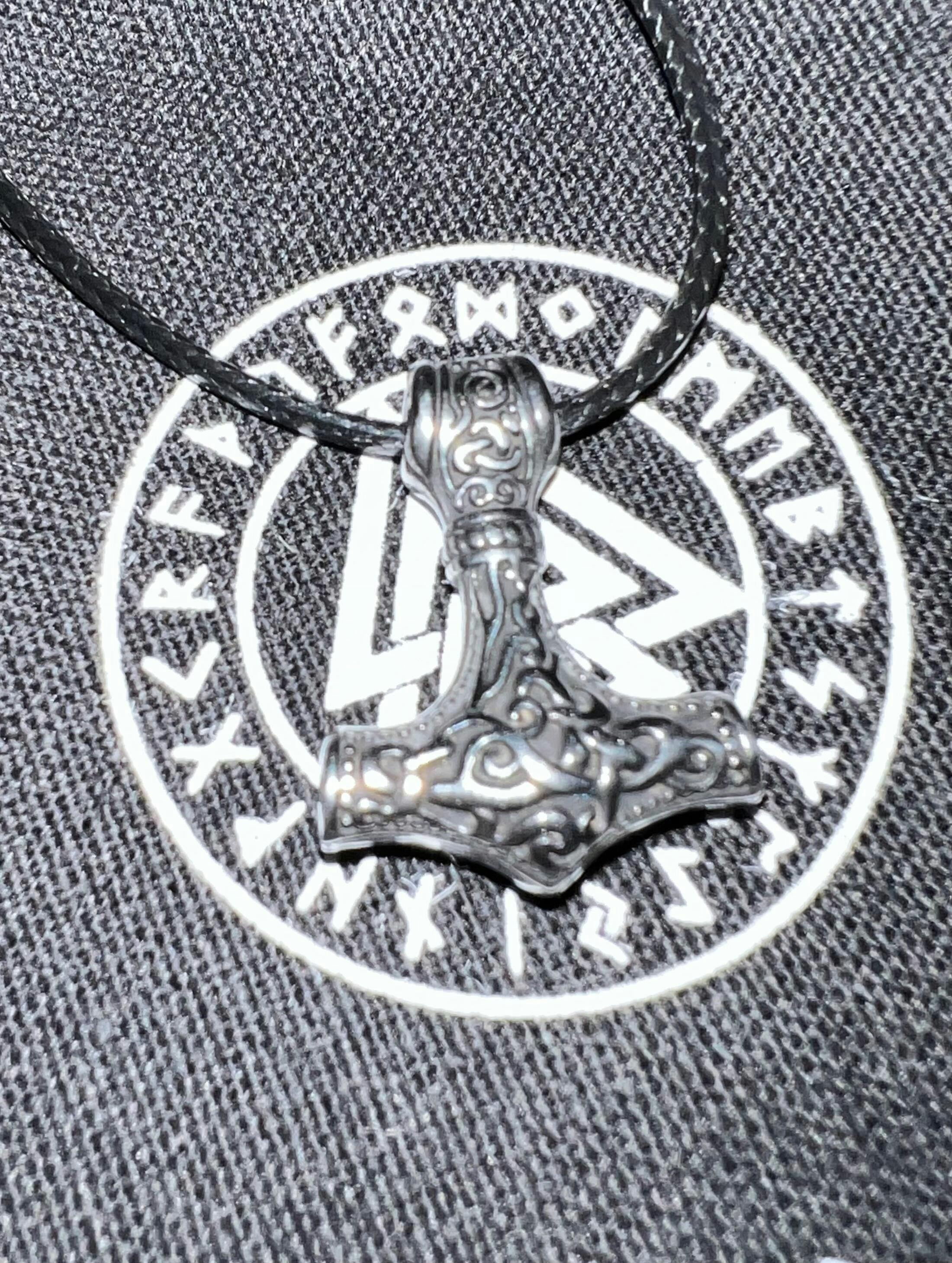 Tiny Mjölnir the Thor's hammer amulet with Nordic inspired ornamental engravings scaled to size, ideal for a smaller Viking. A comfortable necklace is included with the amulet perfect for the wear of this piece.