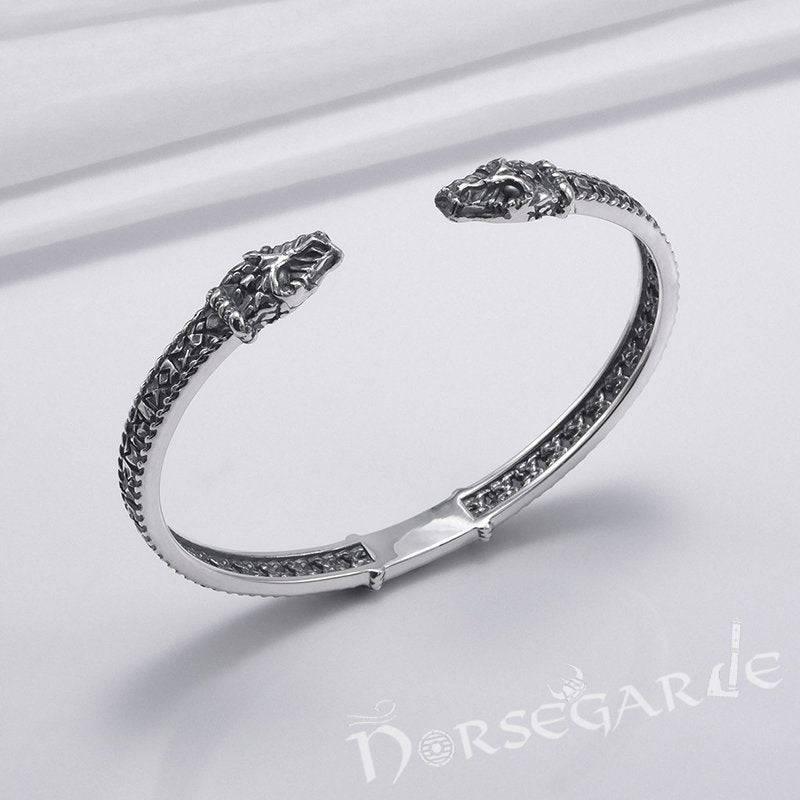 Handcrafted Runic Jormungandr Torc Bracelet - Sterling Silver