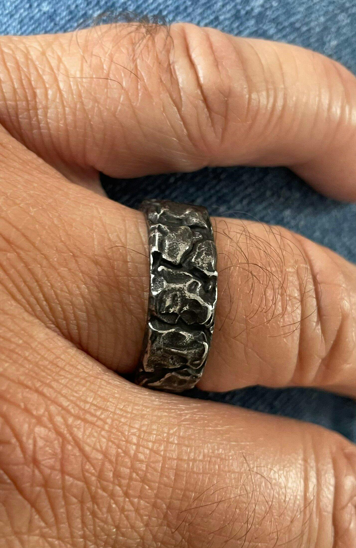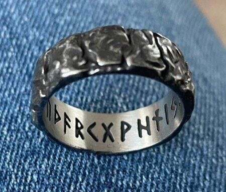 This ring is forged with a design that echoes the rugged heritage of the Viking age. The outer surface, carved with the texture of ancient tree bark, recalls the harsh, untamed landscapes that shaped the Norsemen. Around the band are the Elder runes; symbols of power, fate, and the gods, etched on the inner band of the ring. The runes speak of old secrets and forgotten battles, binding the wearer to the warrior spirit of the North. A true symbol of heritage and strength, this ring calls to those who honor the old ways and seek to carry the weight of Norse legend with them. For more information on how to accurately measure your finger size, please refer to our Ring Sizing Guide.