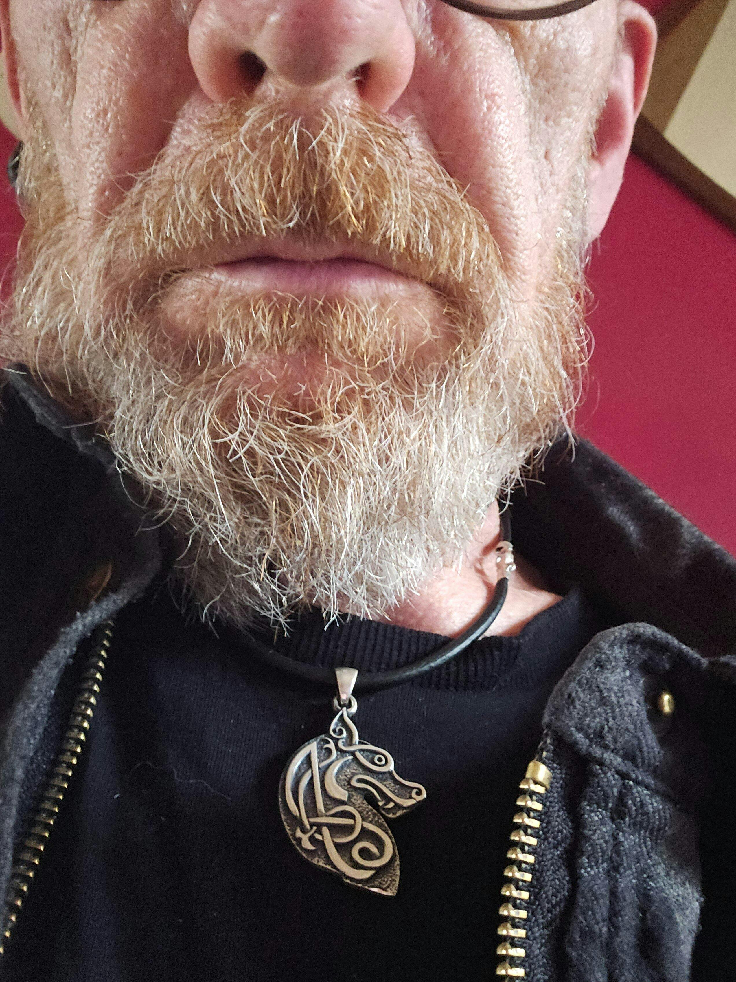 Genuine handcrafted 925 Sterling Silver wolf head pendant complete with Celtic engravings. This is a single sided pendant.